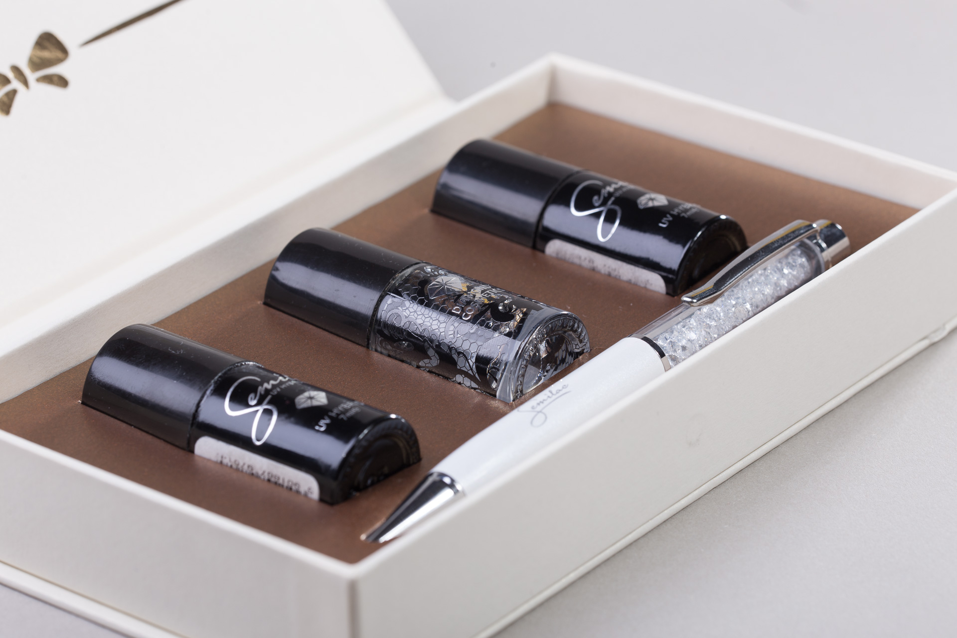 Denken Sie daran, dass es bei vielen Produkten in einer Box am besten ist, uns die Produkte in physischer Form zu schicken. Gemeinsam legen wir das Material und das Design des Inlays fest. Dann gestalten wir das gesamte Inlay und senden es zur Freigabe.