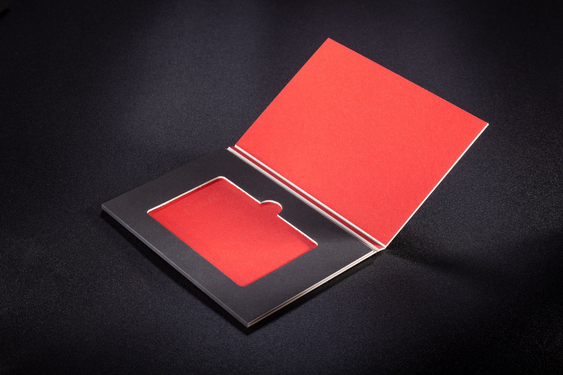 Każda z wersji posiada w standardzie znakowanie metodą hotstampingu lub tłoczenia. Przeczytaj osobny artykuł o techniach uszlachetniania i hot stampingu. Casecard wykonujemy w całości w naszej firmie. Wykorzystujemy tu wielowarstwowe kszerowanie, specjalistyczne rowkowanie (dokładnie takie samo, jak w przypadku najwyższej jakości pudełek), pozycyjne sztancowanie i głęboki hot-stamping.